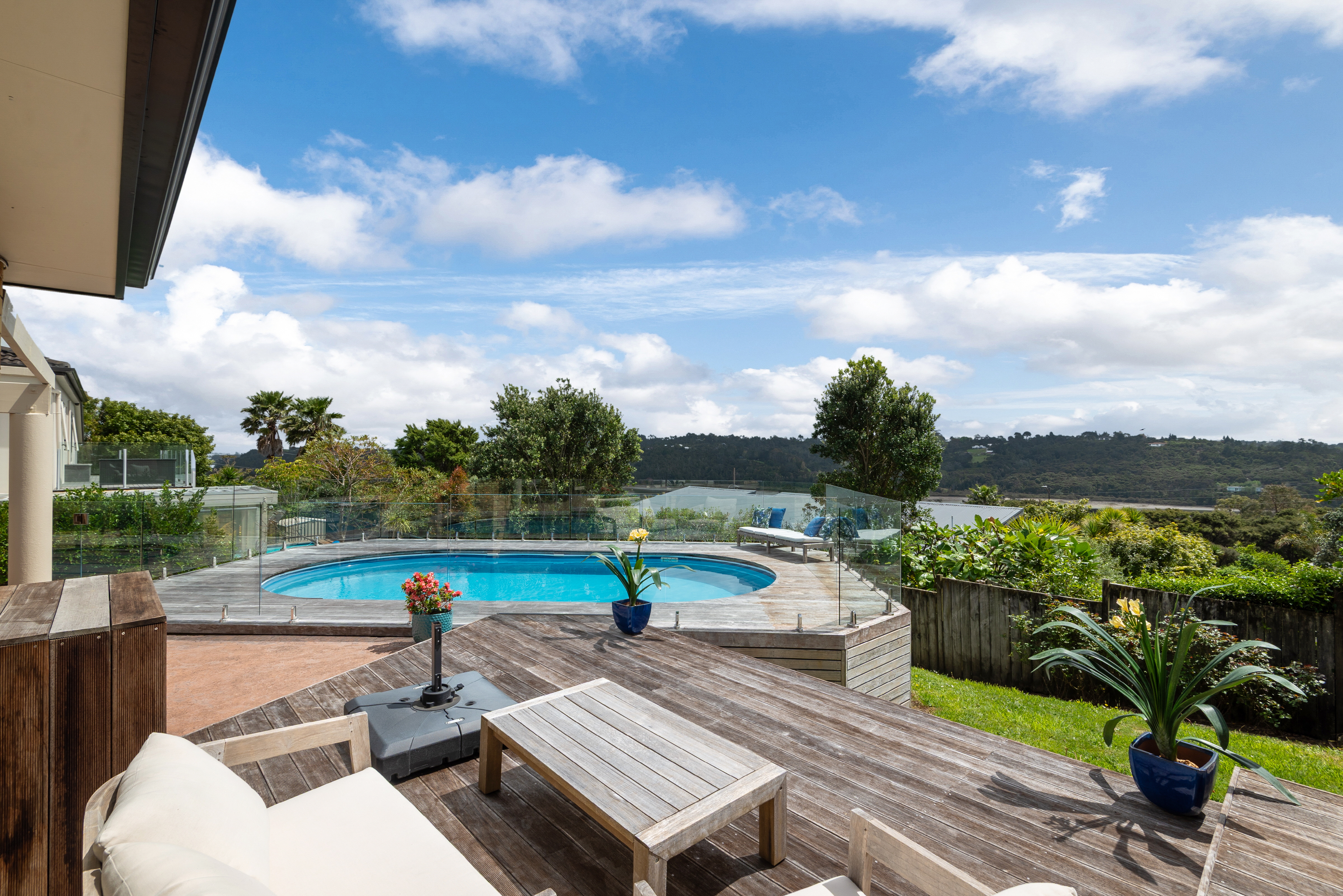 The master suite is a peaceful haven featuring an ensuite, walk-in wardrobe, and direct deck access, while three additional bedrooms in a separate wing provide space and privacy for family or guests.